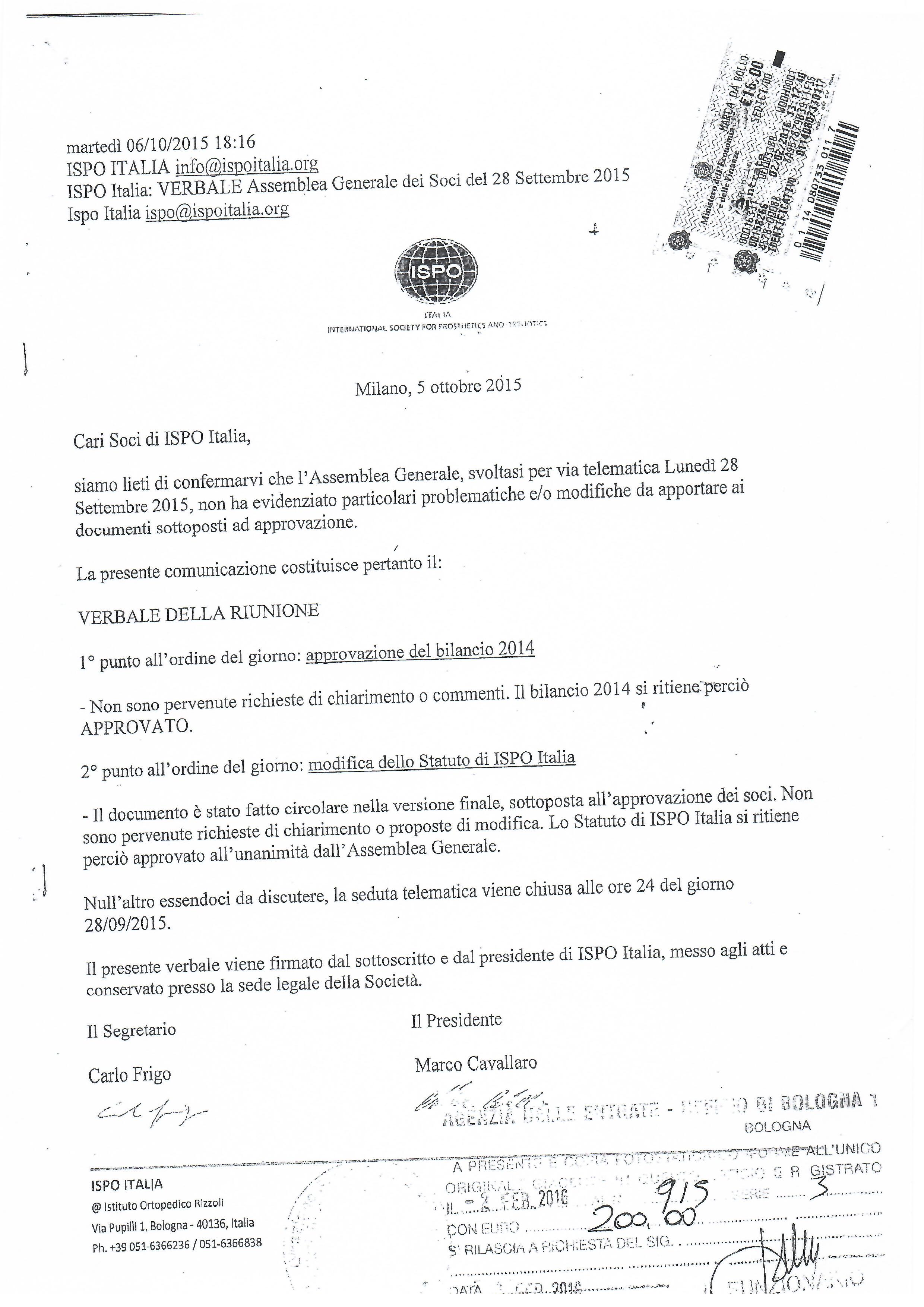- “Verbale” dell’Assemblea Generale ISPO Italia